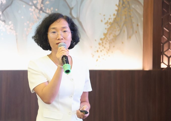 Bà Nguyễn Hồng Loan, Chuyên gia về chính sách khí hậu, Công ty TNHH Kiến tạo khí hậu xanh (GreenCIC) - Trưởng nhóm nghiên cứu chia sẻ kết quả nghiên cứu. Ảnh: Trung Nguyên. |