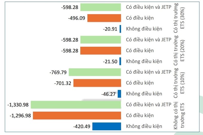 Chi phí đầu tư giảm phát thải giảm được trong 12 kịch bản đánh giá tác động của ETS. Nguồn: GreenCIC. |