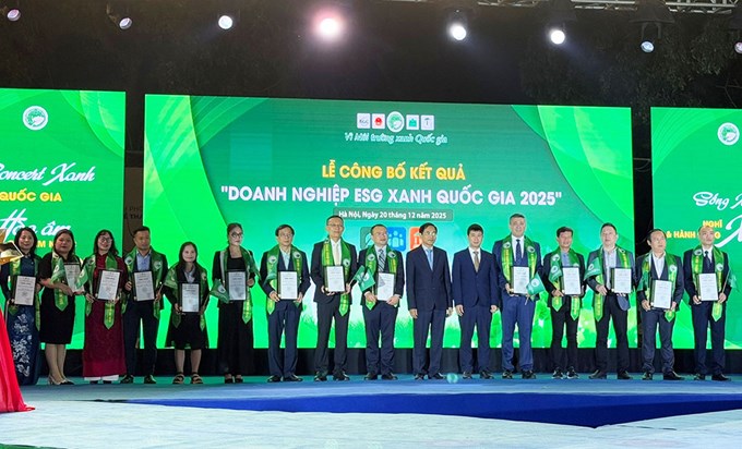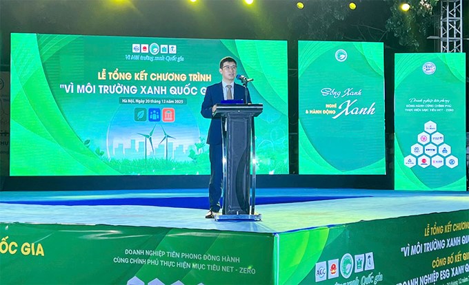 Tối 20/12/2025, tại Hà Nội đã diễn ra lễ tổng kết Chương trình “Vì môi trường xanh quốc gia 2025” và công bố danh sách “Doanh nghiệp ESG xanh quốc gia 2025”. Sự kiện nhằm đánh giá kết quả triển khai các hoạt động bảo vệ môi trường, đồng thời ghi nhận, tôn vinh những doanh nghiệp tiên phong trong thực hiện chiến lược phát triển bền vững tại Việt Nam.